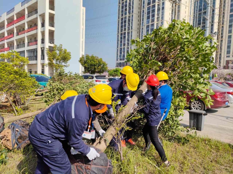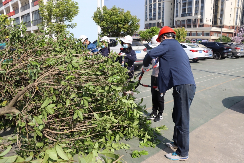 活動中,活動人員分為修剪、搬運(yùn)、種植三個(gè)小組,大家分工協(xié)作,干勁十足。修剪組負(fù)責(zé)對樹苗枝葉進(jìn)行修剪,確保樹苗種植后的快速出新芽。搬運(yùn)組肩挑臂抬手拖,負(fù)責(zé)將樹苗運(yùn)送到已挖好的樹坑。種植組負(fù)責(zé)對樹苗進(jìn)行培土種植,他們有的揮鍬鏟土,有的扶正踩實(shí),澆水灌溉。三個(gè)小組緊密合作,每道工序緊密銜接、配合默契,活動現(xiàn)場熱火朝天,熱情高漲。
