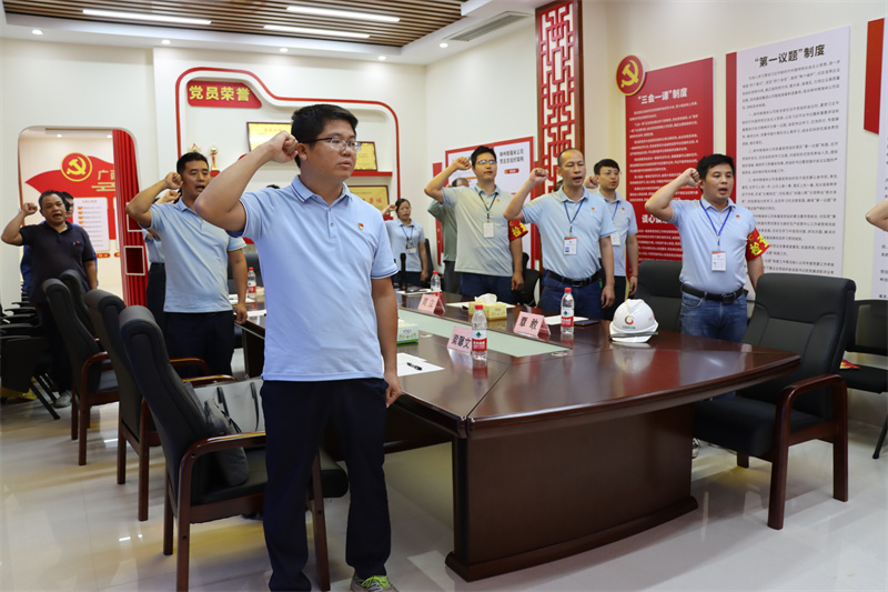 “我志愿加入中國共產黨,擁護黨的綱領,遵守黨的章程……”活動在重溫入黨誓詞中拉開序幕,全體黨員同志有序列隊肅立,右手握拳,面對黨旗莊嚴宣誓,以鏗鏘有力的宣誓聲表達著永遠忠于黨、永遠跟黨走和為共產主義事業(yè)奮斗終身的決心。隨后,大家共同為第三季度入黨的同志過黨員政治生日,進一步增強黨員的榮譽感和責任感。