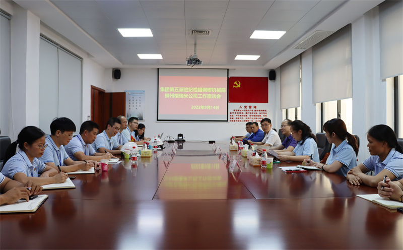 9月14日,集團公司第五派駐紀檢組組長隆日峰到柳州格瑞米公司開展調(diào)研,機械院黨委副書記、董事、工會主席李小春陪同調(diào)研。