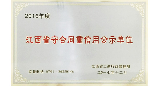 2016年度江西省守合同重信用公示單位