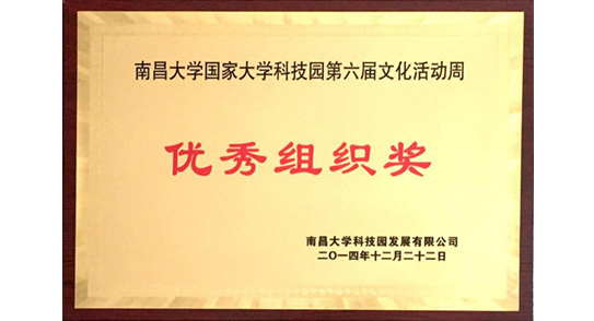 南昌大學(xué)國家大學(xué)科技園第六屆活動(dòng)周優(yōu)秀組織獎(jiǎng)