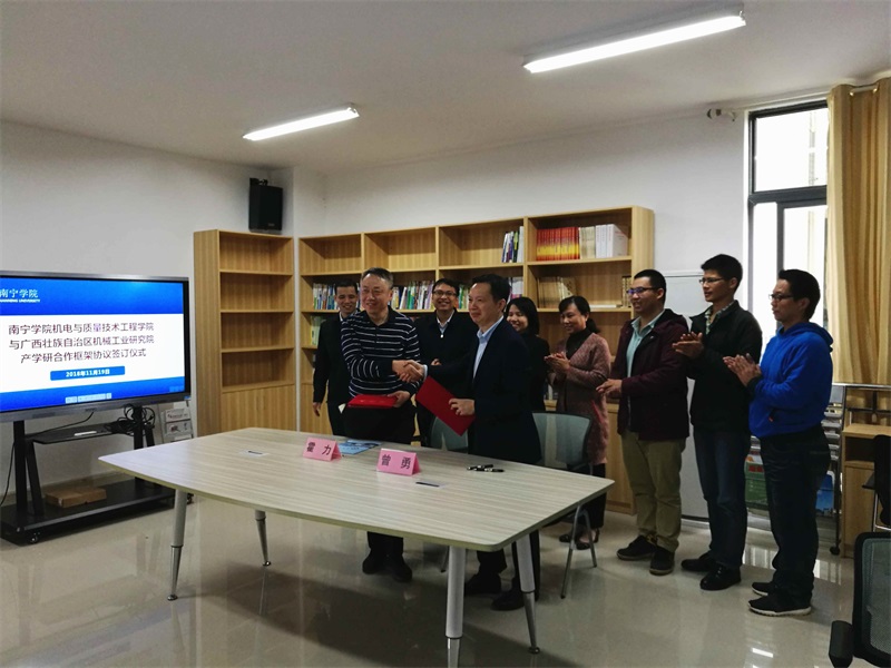 深入落實(shí)校企合作,致力實(shí)現(xiàn)產(chǎn)學(xué)研雙贏----我院與南寧學(xué)院機(jī)電與質(zhì)量技術(shù)工程學(xué)院簽訂《產(chǎn)學(xué)研合作框架協(xié)議》