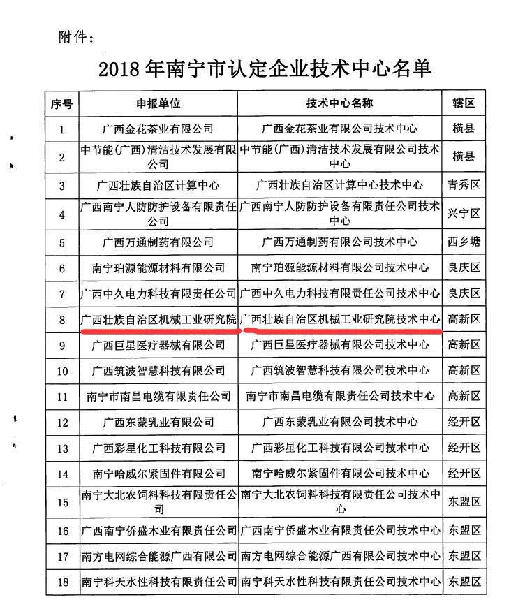 近日,南寧市工業(yè)和信息化委員會公布了2018年南寧市企業(yè)技術(shù)中心名單(南工信科技〔2018〕15號),我院登榜其中,喜迎2019年開門紅。