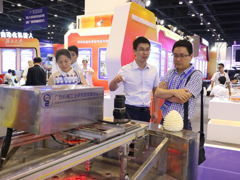 此次展會(huì)以“創(chuàng)新支撐發(fā)展,建設(shè)壯美廣西”為主題,機(jī)械院公司除了作為廣西先進(jìn)制造的突出成就單位落戶(hù)于廣西科技支撐產(chǎn)業(yè)高質(zhì)量發(fā)展展區(qū)的先進(jìn)制造板塊(以下簡(jiǎn)稱(chēng)“先進(jìn)制造”展區(qū)),同時(shí)還作為南寧市重大專(zhuān)項(xiàng)的科技成果創(chuàng)新單位亮相于南寧市的區(qū)域展廳。機(jī)械院公司近年來(lái)貫徹落實(shí)“中國(guó)制造2025”工作要求,加快推進(jìn)“互聯(lián)網(wǎng)+工業(yè)”行動(dòng),促進(jìn)互聯(lián)網(wǎng)、大數(shù)據(jù)、人工智能與制造業(yè)的深度融合,推動(dòng)“廣西制造”向“廣西智造”轉(zhuǎn)變。在“先進(jìn)制造”展區(qū),我司的精品“三劍客”--套裝式內(nèi)外袋物料包裝全自動(dòng)生產(chǎn)線、高壓清洗機(jī)器人系統(tǒng)和3D打印項(xiàng)目閃耀登場(chǎng),傾力展示工業(yè)機(jī)器人領(lǐng)域以及3D打印領(lǐng)域的創(chuàng)新成果。