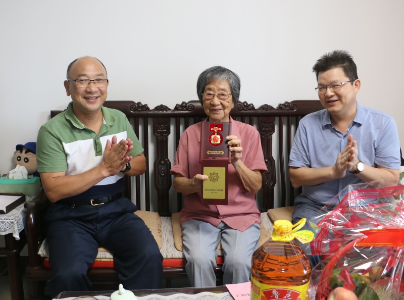 劉元展、林世強(qiáng)向鄧振羽老同志轉(zhuǎn)交紀(jì)念章