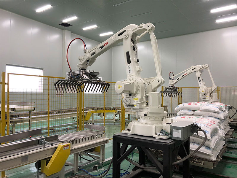 我院套裝式內(nèi)外袋全自動(dòng)包裝碼垛機(jī)器人生產(chǎn)線順利投入運(yùn)行