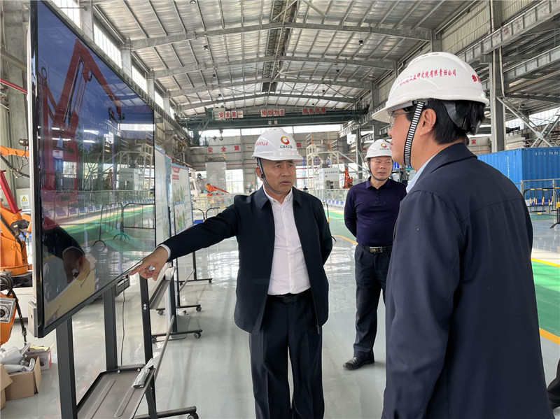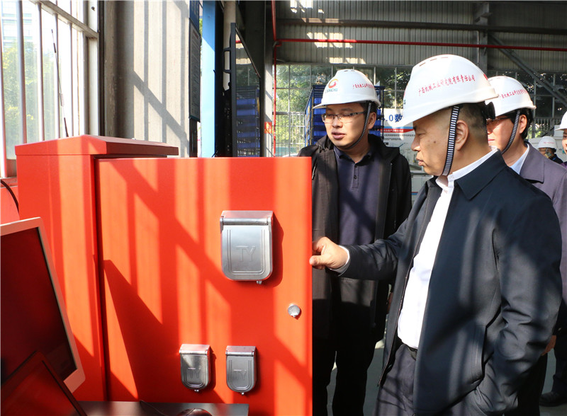 白雷部長參觀公司展廳,到智能制造車間檢查指導(dǎo)安全生產(chǎn)工作,了解機(jī)械院自主研發(fā)的智慧電箱、綠籬修剪機(jī)器人、全自動錐桶擺放機(jī)器人等產(chǎn)品
