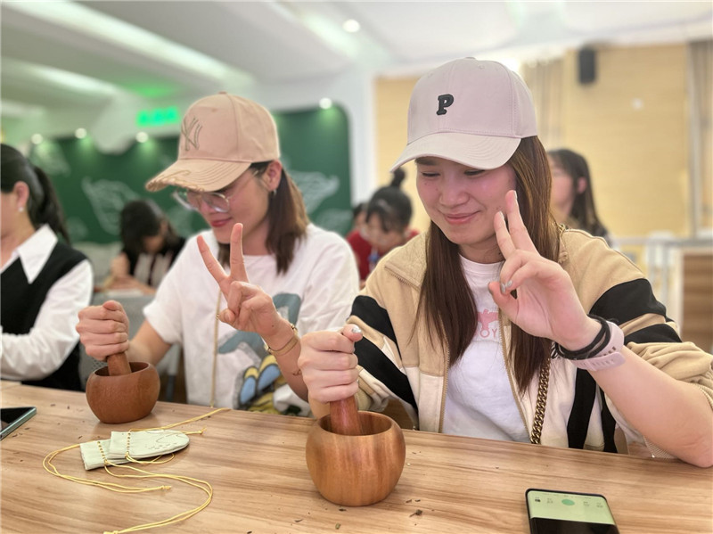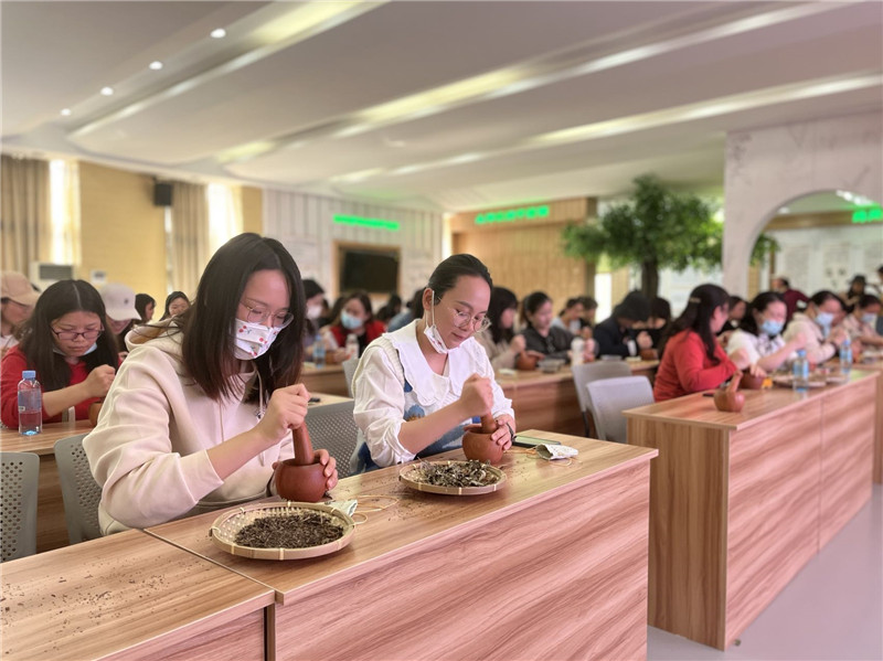 “吳茱萸芳香去濕、疏肝理氣,薄荷可以提神醒腦,大家隨身佩戴,可以在人體周圍形成高濃度的小環(huán)境......”在指導(dǎo)老師的解說中,女職工們一起認(rèn)識了艾葉、薄荷、紫蘇、吳茱萸、花椒等草藥,以及每種草藥的獨特功效,并通過動手實踐,制香、聞香,更生動地認(rèn)識藥用植物與養(yǎng)生知識、傳統(tǒng)文化的關(guān)聯(lián)。