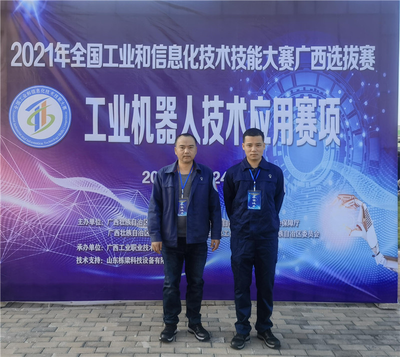 機(jī)械院李永成、李修明組成的競(jìng)賽隊(duì)伍,參加了由自治區(qū)工業(yè)和信息化廳等5部門(mén)聯(lián)合舉辦的2021年全國(guó)工業(yè)和信息化技術(shù)技能大賽廣西選拔賽。本次為兩人首次搭檔參加該類型比賽,經(jīng)過(guò)激烈角逐,從工業(yè)機(jī)器人系統(tǒng)維護(hù)員(工業(yè)機(jī)器人技術(shù)應(yīng)用)賽項(xiàng)職工組8個(gè)參賽隊(duì)伍中脫穎而出,獲得了總分第一的好成績(jī)。