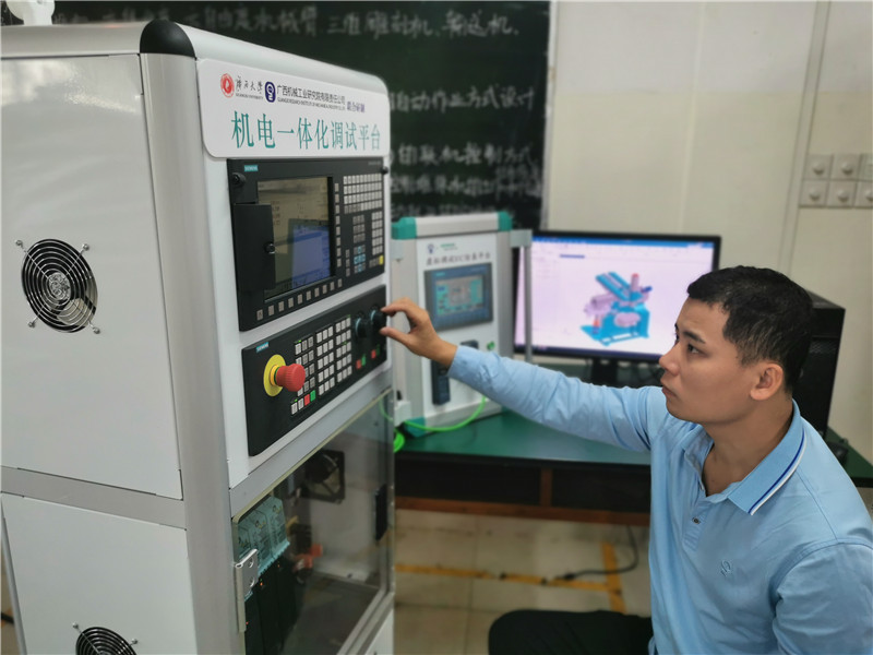 “中國(guó)智能制造突圍需要更多人的參與?!?017年,李修明爭(zhēng)取到廣西科技廳組織的高層次技能人才公費(fèi)赴德國(guó)培訓(xùn)名額,培訓(xùn)期間學(xué)習(xí)了數(shù)字孿生、精密制造等先進(jìn)制造方法,調(diào)研了“雙元制”工學(xué)結(jié)合培訓(xùn)模式,深刻引發(fā)他對(duì)廣西工科院校教學(xué)模式中課程內(nèi)容設(shè)置與現(xiàn)代化制造模式脫節(jié)這一問(wèn)題的探索和實(shí)踐。