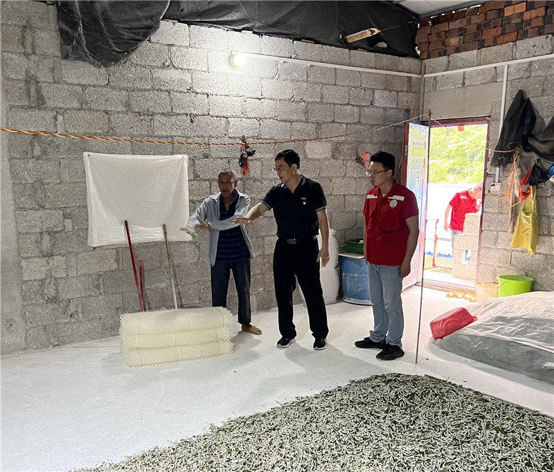 在走訪峰洋村各漏屯集中養(yǎng)蠶點(diǎn)的過(guò)程中,景東平副董事長(zhǎng)詳細(xì)詢問(wèn)了蠶房租金、養(yǎng)殖規(guī)模和產(chǎn)值等情況,了解到峰洋村通過(guò)建造蠶房租賃給蠶農(nóng),已經(jīng)形成每年2-3萬(wàn)元的村集體收益,同時(shí)也滿足了蠶農(nóng)發(fā)展養(yǎng)殖業(yè)產(chǎn)業(yè)的場(chǎng)地需求,他表示這是互利互惠的好思路好做法,要持續(xù)進(jìn)行下去。景東平副董事長(zhǎng)還叮囑駐村幫扶干部做好產(chǎn)業(yè)政策宣傳,和后盾單位要密切配合,幫助農(nóng)戶拓寬產(chǎn)品銷路,提升“自我造血”功能,將峰洋村桑蠶產(chǎn)業(yè)做優(yōu)做強(qiáng)。