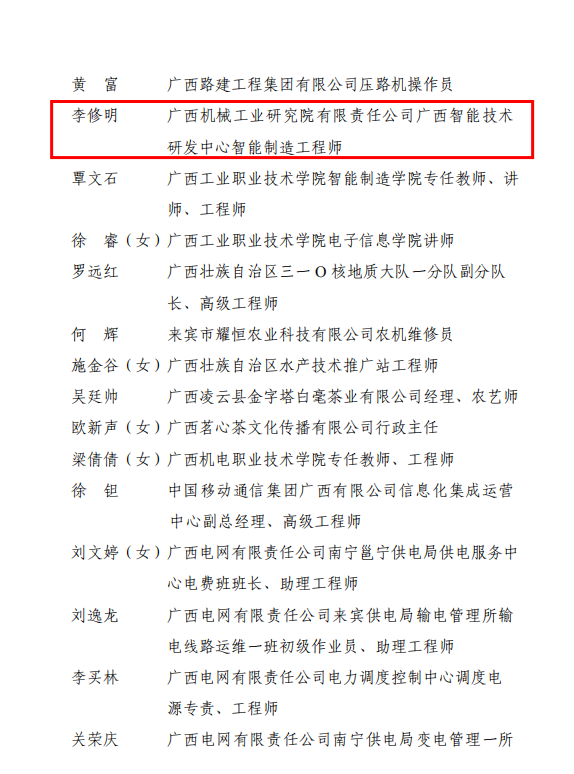 習(xí)近平總書記指出:“創(chuàng)新的事業(yè)呼喚創(chuàng)新的人才。”為推動(dòng)產(chǎn)業(yè)工人不斷提高技術(shù)水平,煥發(fā)創(chuàng)新創(chuàng)造活力,近日,自治區(qū)總工會公布了廣西五一勞動(dòng)獎(jiǎng)?wù)潞蛷V西工人先鋒號表彰名單,機(jī)械院梅開二度,時(shí)隔一年再次上榜,李修明同志獲授“廣西五一勞動(dòng)獎(jiǎng)?wù)隆薄?