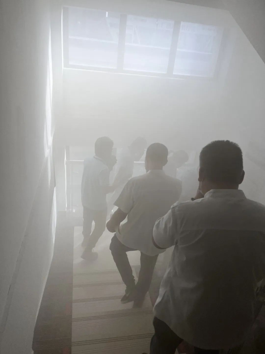 隨后,警報(bào)聲響起,本次演練在逃生通道釋放大量濃煙模擬辦公樓火災(zāi)現(xiàn)場,安全管理部組織全體人員進(jìn)行緊急疏散,通過實(shí)景模擬切身感受,讓員工們更好地學(xué)習(xí)掌握在火場中基本的逃生方法和火場避難技巧。在疏散至空曠地帶后,授課老師還詳細(xì)演示擔(dān)架救援的正確方式、CPR心肺復(fù)蘇操作關(guān)鍵要點(diǎn),指導(dǎo)大家如何正確搶救傷員。參演人員現(xiàn)場學(xué)習(xí)了滅火彈、滅火器等消防設(shè)備的正確使用方法。