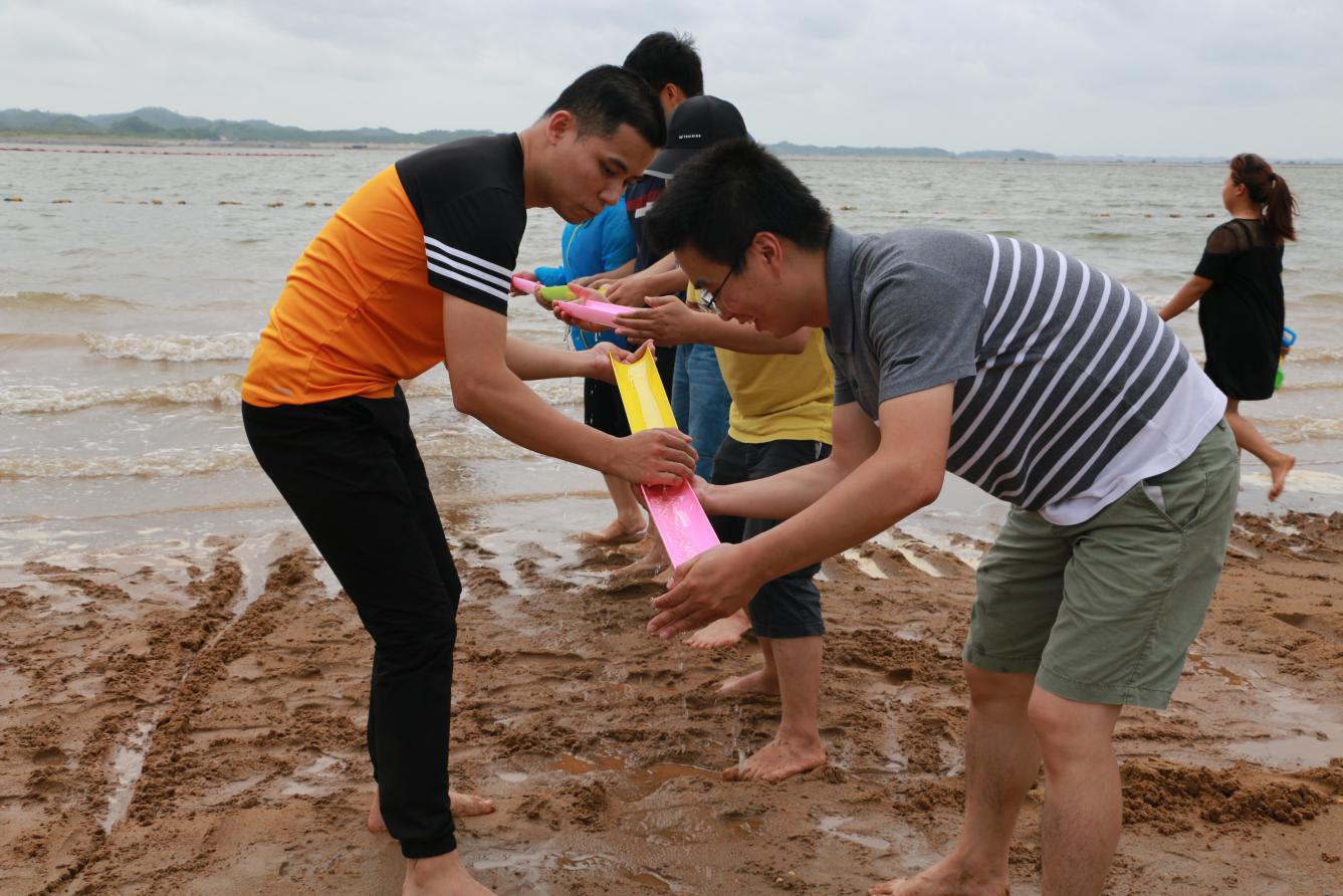 潮潤(rùn)的海風(fēng)吹拂著,腳踏細(xì)沙,眼觀碧波,茅尾海的沙灘景色盡收眼底。6月23日,我院行政和黨群部、市場(chǎng)營(yíng)銷部、財(cái)務(wù)部和技術(shù)中心等4個(gè)部門合計(jì)41名員工匯聚在茅尾海沙灘,一場(chǎng)由院工會(huì)主辦,技術(shù)中心支部承辦組織的戶外素質(zhì)拓展培訓(xùn)活動(dòng)在這里傾情上演。