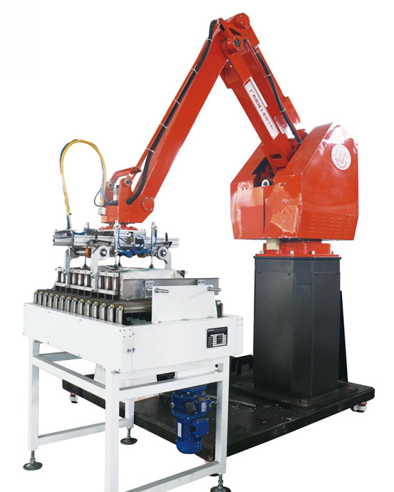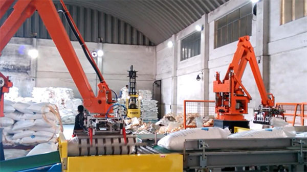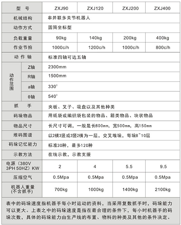 1.基于圓筒坐標系開發(fā)的多關節(jié)機器人,占地面積小,功率消耗低,碼垛效率高,破包率小,達到國內先進水平。