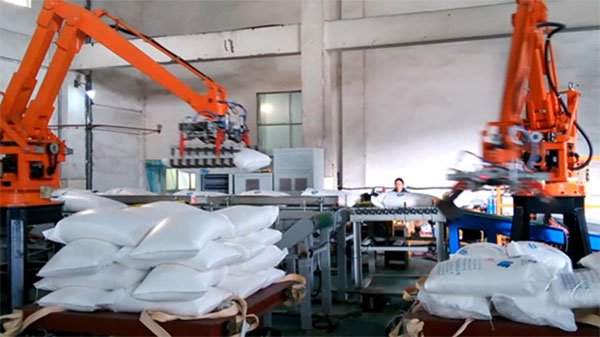 我院與北京航空航天大學機器人研究所共同研發(fā)的高速重載碼垛機器人可廣泛應用于制糖、化肥、飼料、石灰、水泥等行業(yè),完全取代傳統(tǒng)的人工碼垛方式,產(chǎn)品具有高效、平穩(wěn)、安全等特點,已經(jīng)應用于廣西多家制糖企業(yè)。