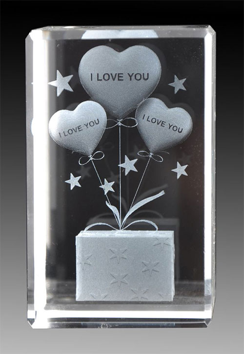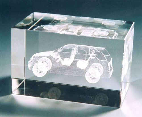 在水晶、玻璃等透明材料內(nèi)雕刻平面或三維立體圖案。