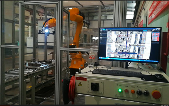 為滿足快速獲取生產(chǎn)零部件精確檢測結(jié)果的需求,全自動機器人在線檢測系統(tǒng)集成了機器人、自動識別系統(tǒng)、光學(xué)三維掃描系統(tǒng)、計算機圖像處理系統(tǒng)、滾筒輸送線及托盤等多種技術(shù),實現(xiàn)自動識別輸送線上零部件類型,并匹配相應(yīng)軌跡程序驅(qū)動機器人對零部件表面結(jié)構(gòu)進行光學(xué)三維自動掃描、自動拼接,從而自動獲取零部件完整三維點云數(shù)據(jù)的系統(tǒng),具有不貼點、不噴粉、全自動、高精度、高效率、方便性、穩(wěn)定性的特點。