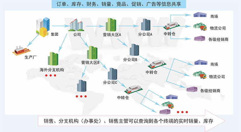 分銷管理信息系統(tǒng)針對(duì)大中型企業(yè)分銷業(yè)務(wù)管理特點(diǎn),全面支持訂單、庫存、配送、財(cái)務(wù)、營(yíng)銷活動(dòng)、市場(chǎng)活動(dòng)、價(jià)格管理等企業(yè)分銷業(yè)務(wù)職能,實(shí)現(xiàn)包含總公司、營(yíng)銷大區(qū)、分公司、辦事處、供應(yīng)商、經(jīng)銷商、分銷商、連鎖店/專賣店/專柜等企業(yè)多個(gè)經(jīng)濟(jì)單元組織的多層次分級(jí)集中管理。具備電子商務(wù)功能,支持網(wǎng)上訂單處理,彈性的行業(yè)自定義功能,具有良好的可擴(kuò)展能力。