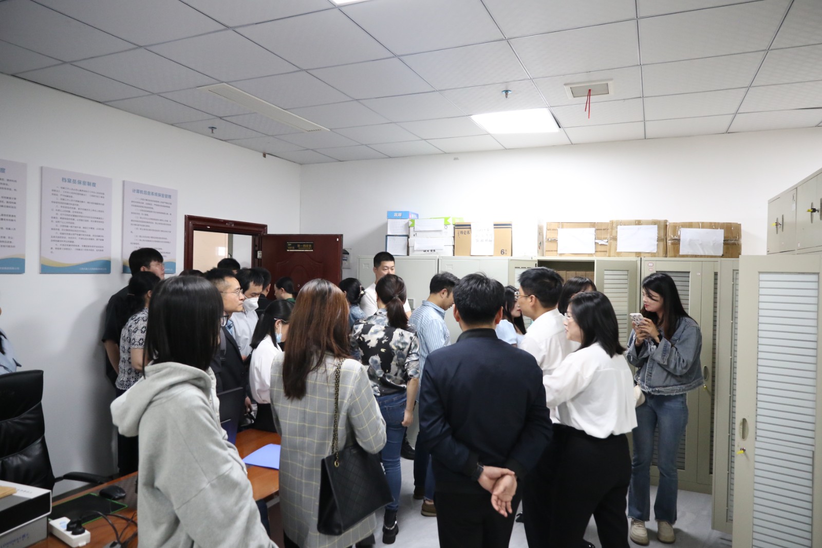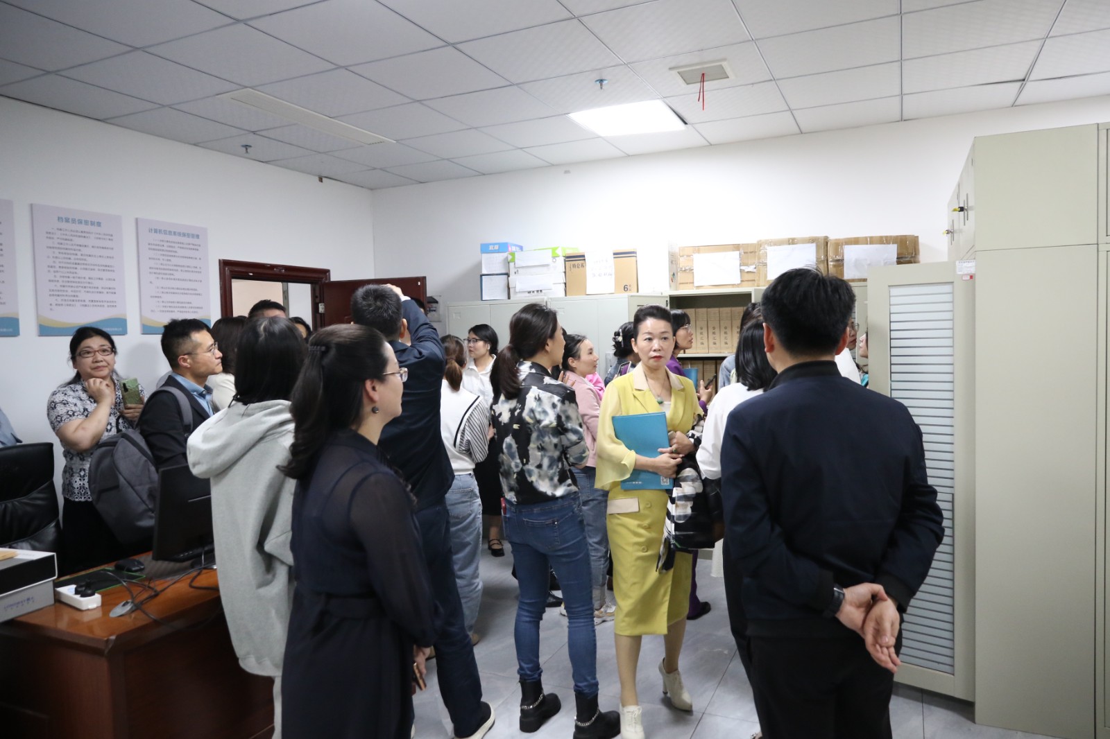 緊接著大家共同參觀了檔案室。余主任充分肯定了學校在臺賬管理方面的規(guī)范和嚴謹。