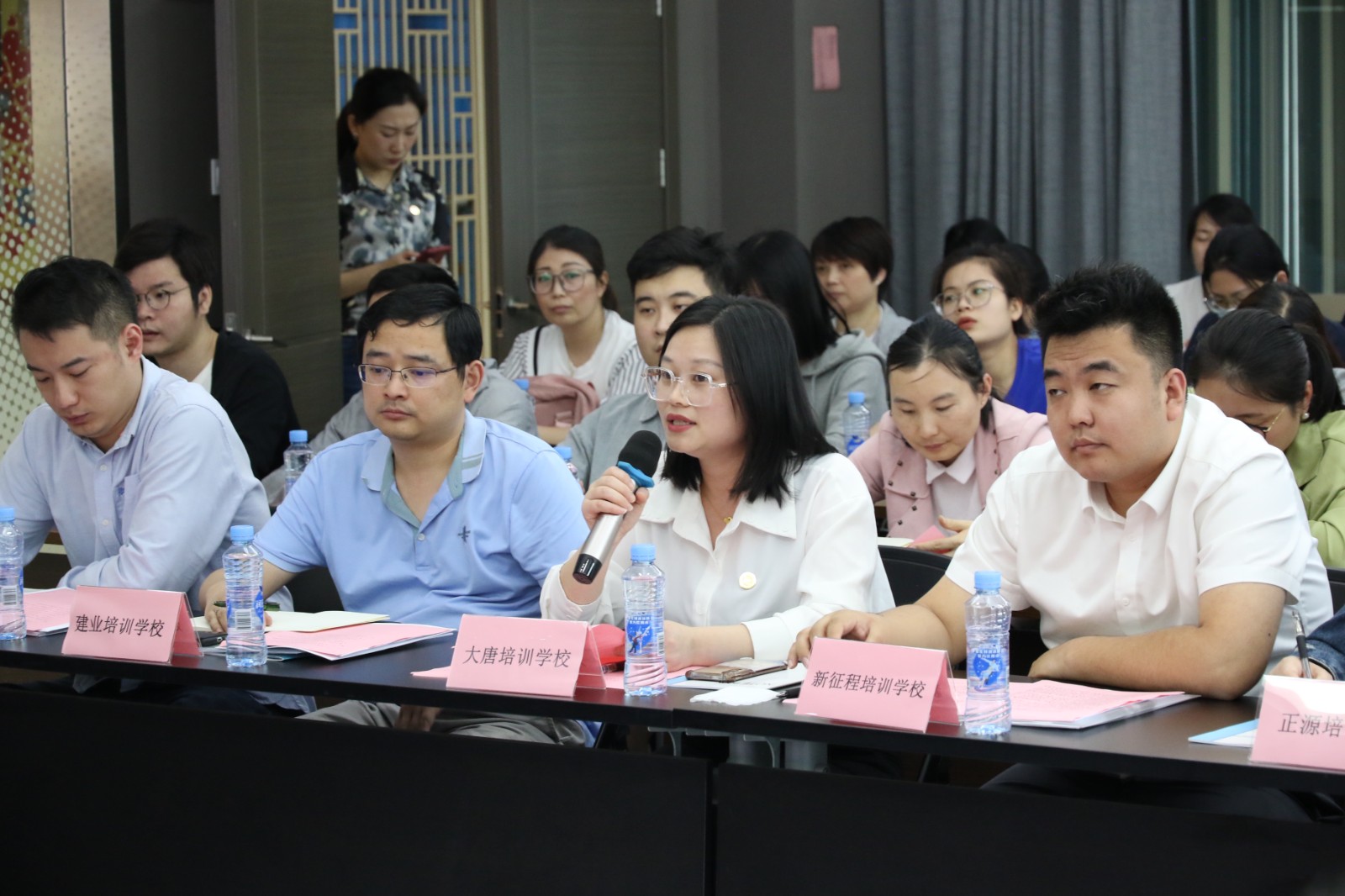 參觀完檔案室后,各機構進行了培訓臺賬互評投票,其中星瀚、意風和大唐職業(yè)培訓學校分別獲得了臺賬制作標桿機構的前三名。