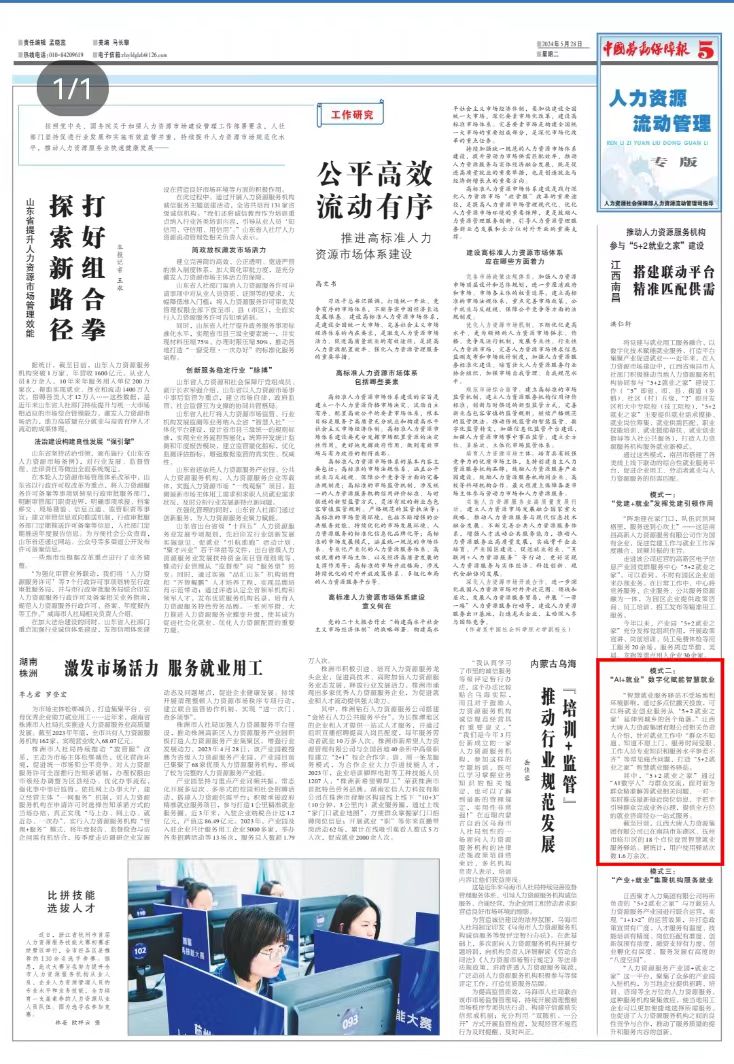 5月28日,中國勞動保障報刊發(fā)江西大唐人力資源集團(tuán)積極參與江西省“5+2就業(yè)之家”建設(shè),首創(chuàng)的“AI+就業(yè)”數(shù)字化賦能智慧就業(yè)模式得到認(rèn)可和肯定。