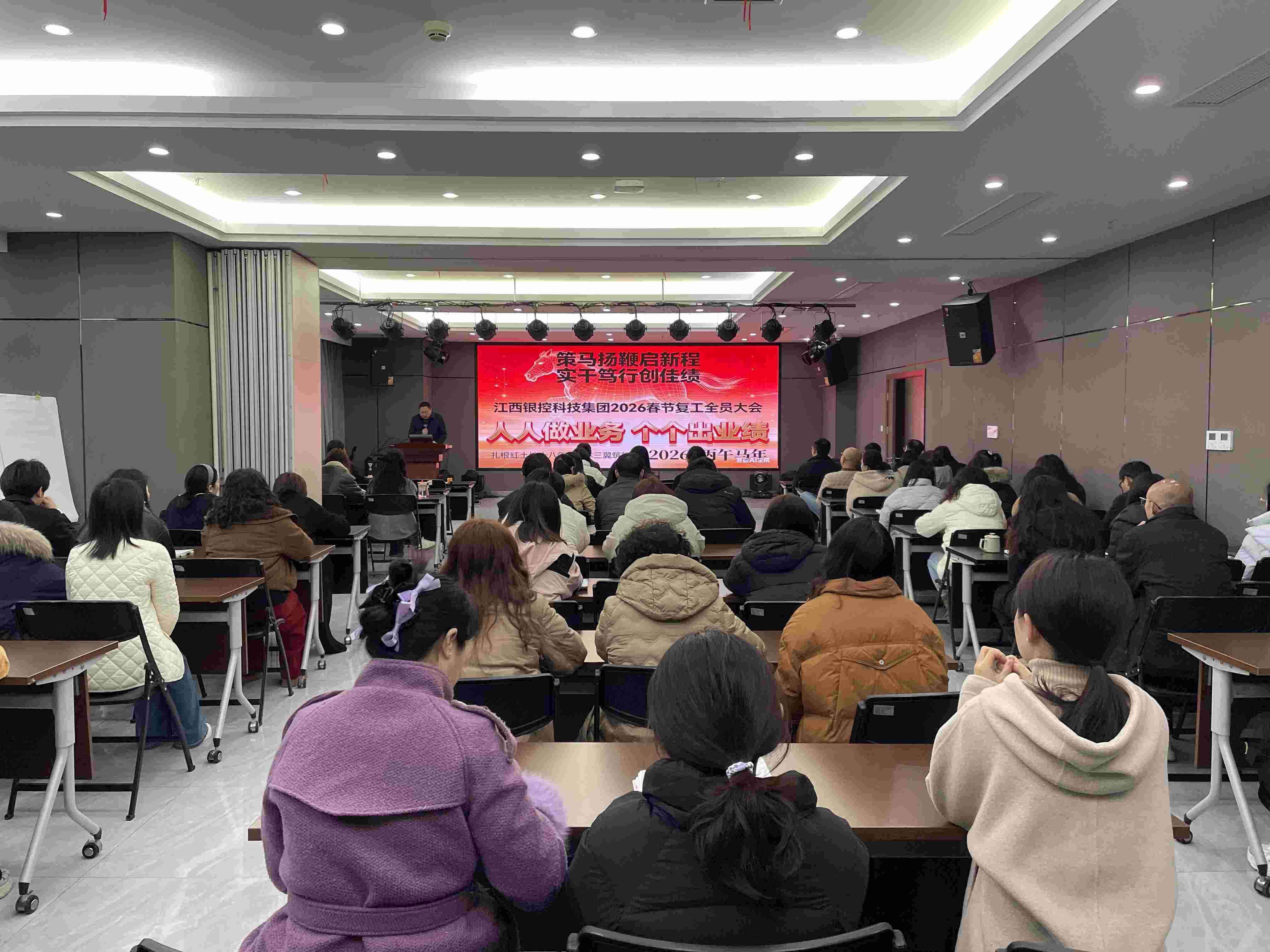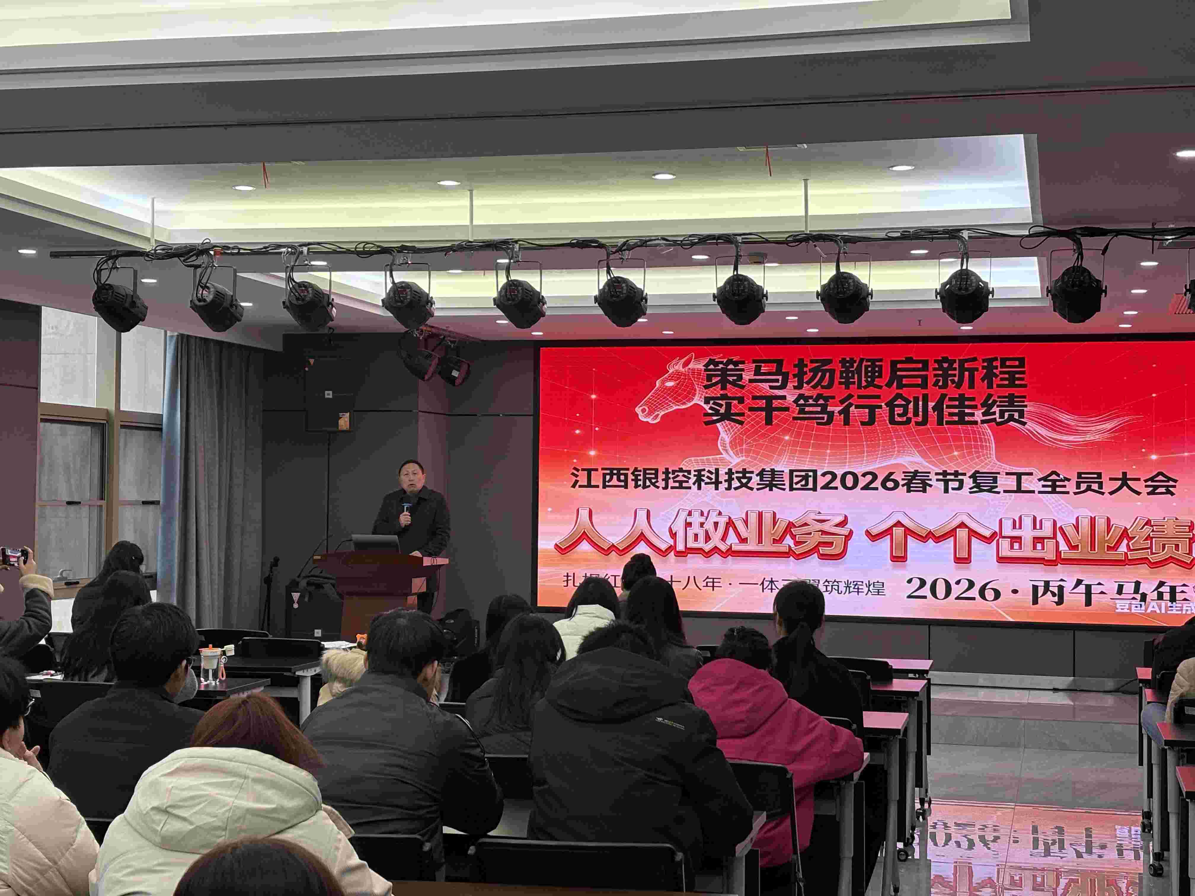 春回大地,萬象更新。2月24日(正月初八),農(nóng)歷丙午馬年首個工作日,江西銀控科技集團(tuán)在昂揚(yáng)奮進(jìn)的氛圍中隆重召開2026年春節(jié)復(fù)工全員大會。集團(tuán)董事長李民出席大會并發(fā)表主旨講話,號召全體員工迅速收心歸位、聚焦主業(yè)、團(tuán)結(jié)擔(dān)當(dāng),以“起步就是沖刺、開局就是決戰(zhàn)”的奮斗姿態(tài),全力沖刺一季度“開門紅”,奮力譜寫集團(tuán)高質(zhì)量發(fā)展新篇章。