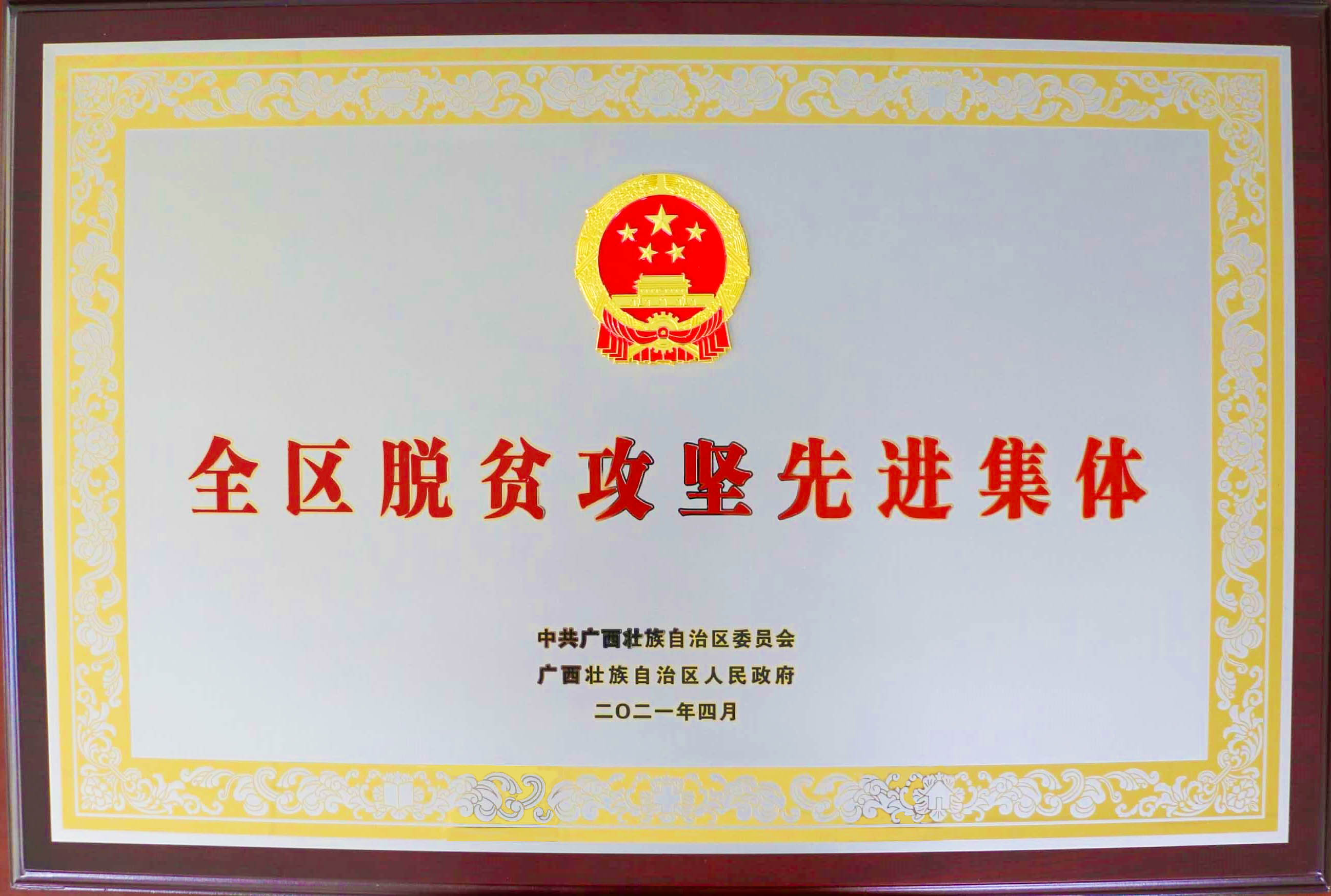 2021年5月7日,全區(qū)脫貧攻堅總結表彰大會召開,會議表彰了一批脫貧攻堅先進集體、先進個人,廣西機械工業(yè)研究院有限責任公司榮獲自治區(qū)黨委、自治區(qū)政府授予的“全區(qū)脫貧攻堅先進集體”榮譽稱號。
