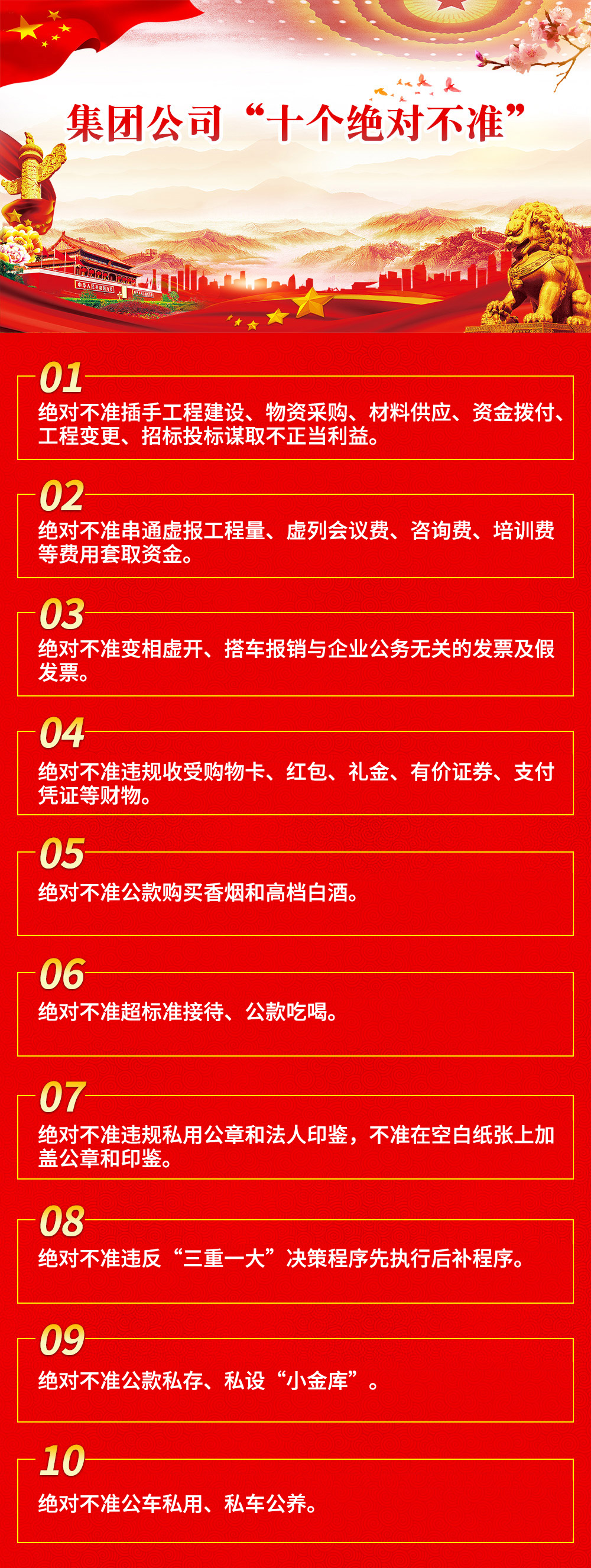 集團公司“十個絕對不準”